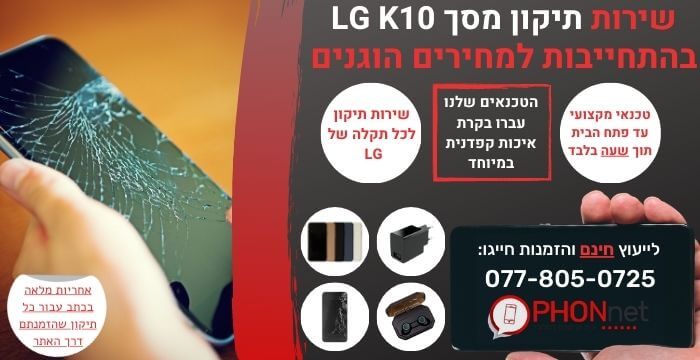 שירות תיקון מסך LG K10 עד בית הלקוח